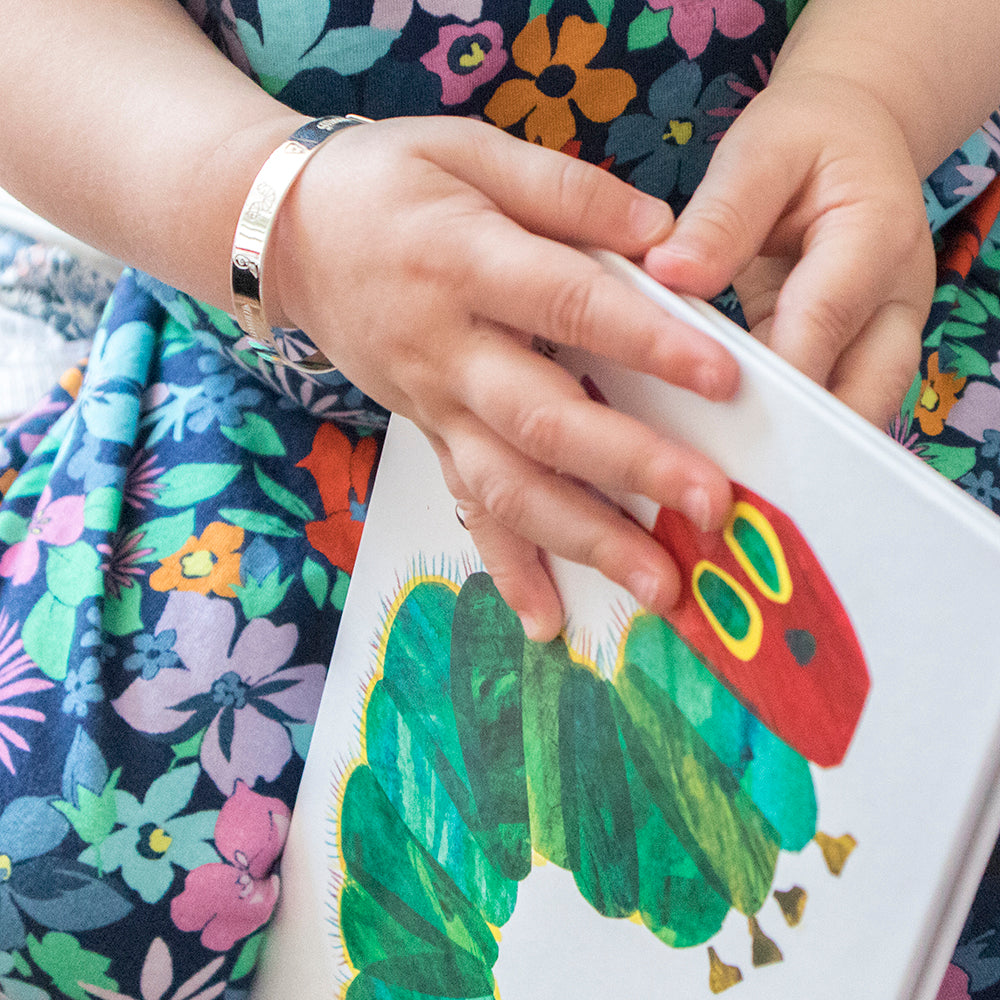 A thoughtful christening or first birthday gift, this Very Hungry Caterpillar baby bracelet is a timeless piece of children's jewellery that celebrates the joy of childhood and storytelling.