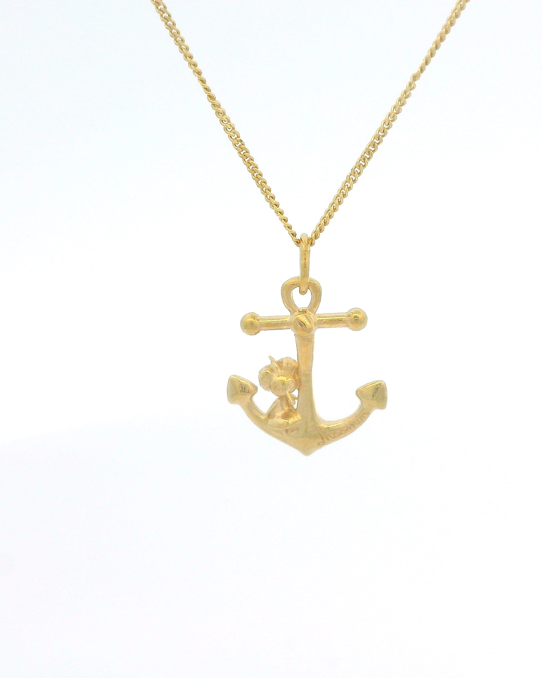 Dive into the secretive charm of Finn Family Moomintroll with our Anchor Bob Necklace in 18ct gold vermeil. Perched playfully atop a tiny anchor, this delightful design features Bob—Thingumy’s curious, elf-like companion—brought to life in shining gold with her spiky hair, wide eyes, and signature smock.