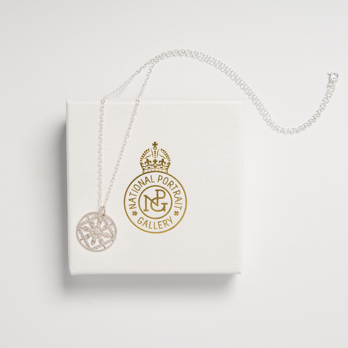 Celebrate historical elegance with the National Portrait Gallery Lace Necklace in Sterling Silver. Inspired by the intricate cartwheel ruff worn in a historic portrait from the National Portrait Gallery, this pendant beautifully captures the delicate artistry of Elizabethan lace.