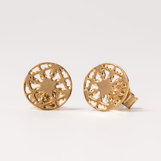 Handcrafted from recycled sterling silver and luxuriously plated in 18ct gold vermeil, the set includes a delicate lace pendant necklace and matching lace stud earrings, each intricately detailed using a precision laser etching process. The earrings feature secure post fittings with butterfly clasps, ensuring comfortable wear for pierced ears.