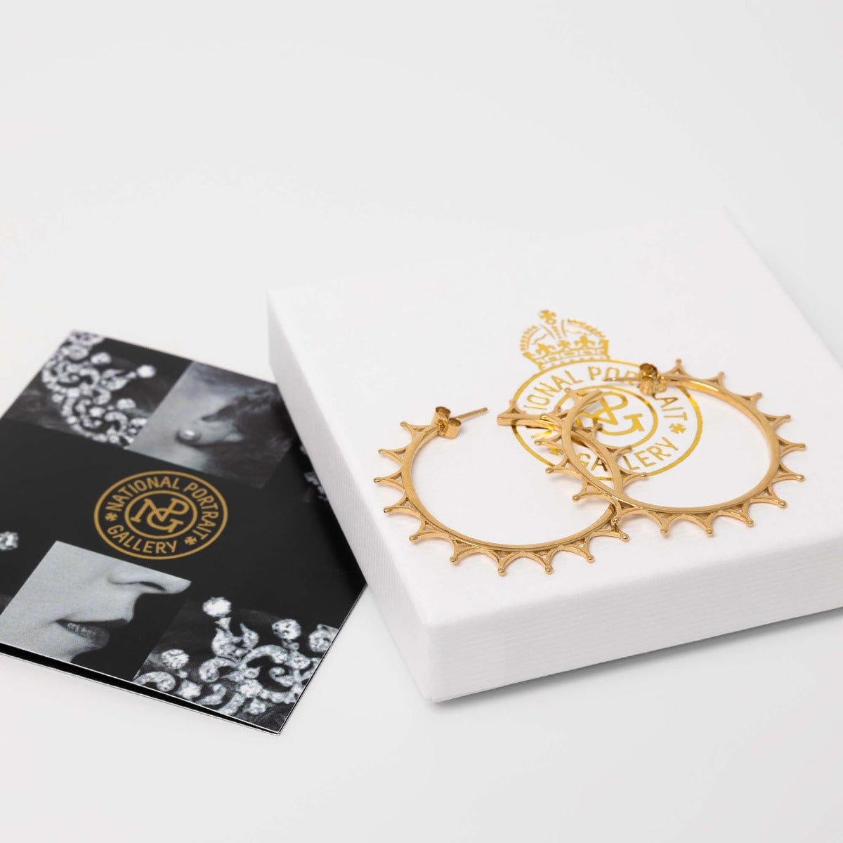 Add a touch of royal splendour to your jewellery collection with the Crown Hoop Earrings, part of the National Portrait Gallery Jubilee Crown Collection. Handcrafted in radiant 18ct gold vermeil, these timeless hoops are inspired by Queen Elizabeth II’s beloved tiara, ‘The Girls of Great Britain and Ireland’, celebrated in her iconic 1952 portrait by Dorothy Wilding.