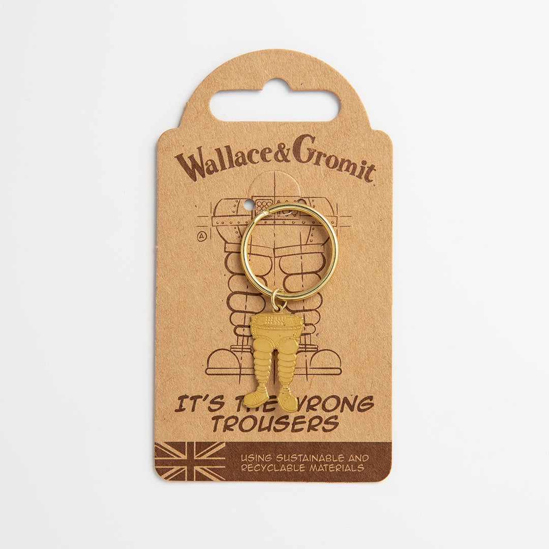 Inspired by the hilarious Wallace & Gromit movie The Wrong Trousers, this whimsical The Wrong Trousers Keyring is a playful nod to one of the duo’s most iconic adventures. Shaped like Wallace’s unforgettable mechanical trousers, this officially licensed keyring is perfect for holding keys or adding charm to bags as a quirky bag accessory.