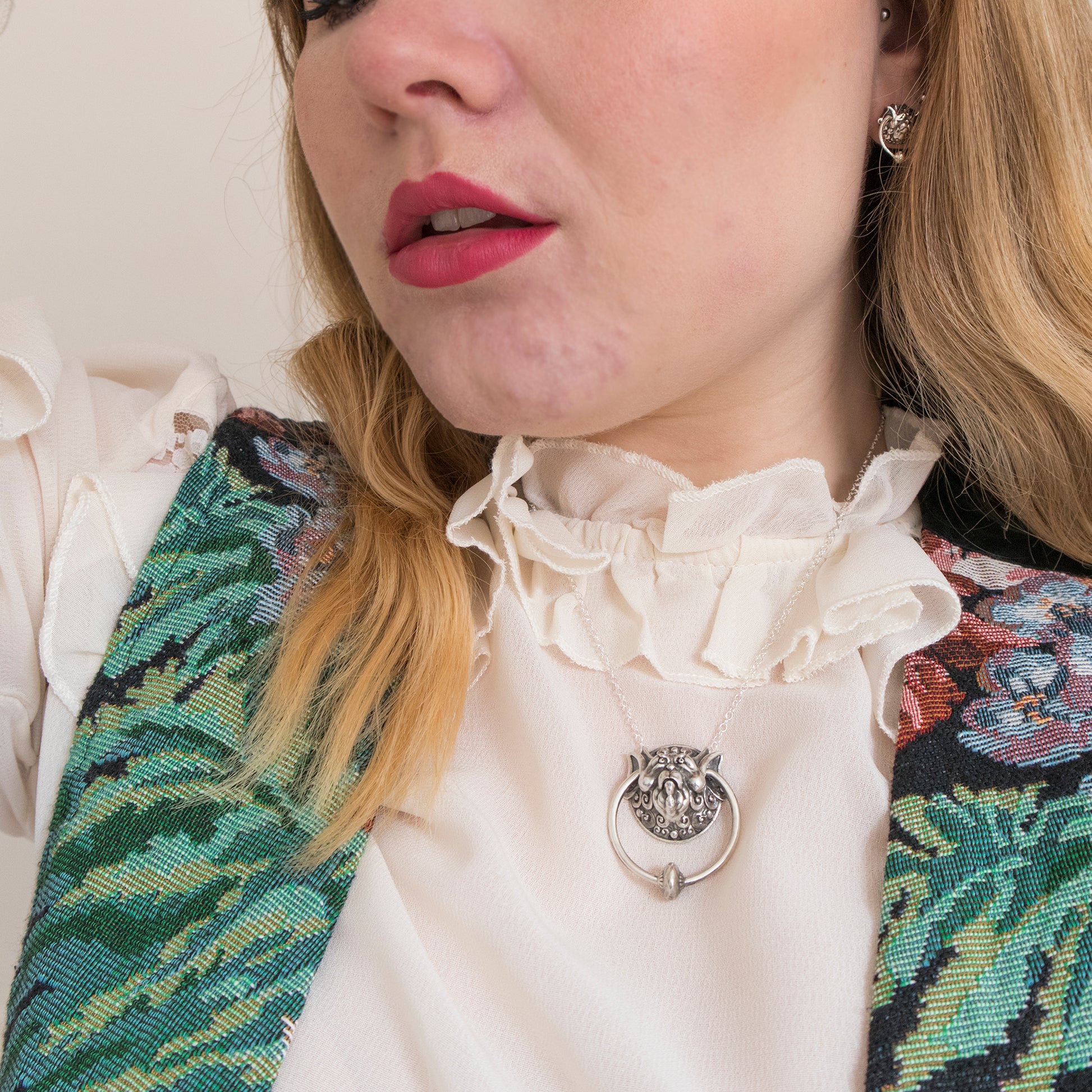 Lovingly handmade in the UK, this necklace is cast from sustainable sterling silver and polished to perfection. Every detail is carefully oxidised to highlight the intricate features, creating a piece that feels like it has stepped straight out of the Goblin King’s labyrinth.