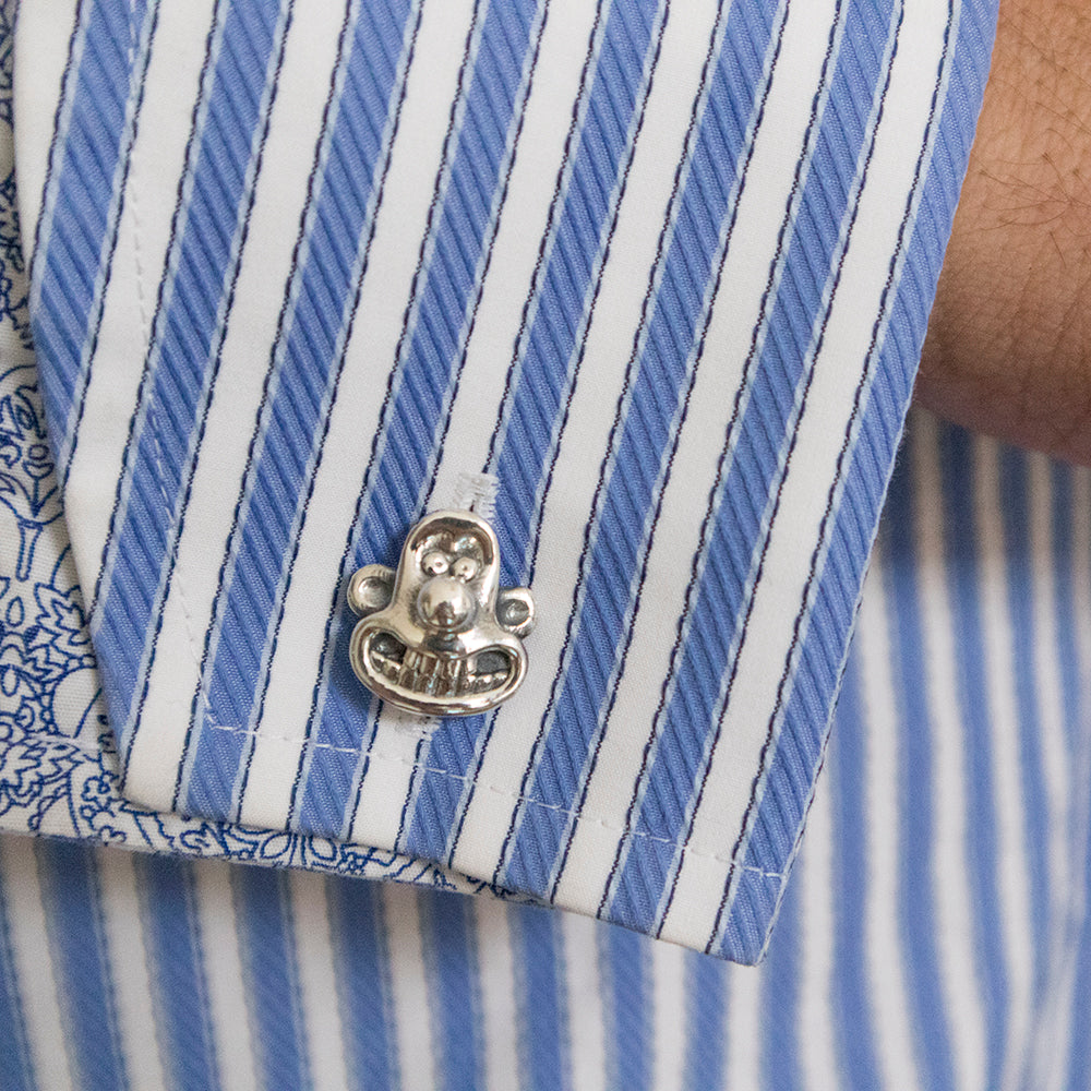 Celebrate the beloved antics of Wallace & Gromit with these charming Sterling Silver Cufflinks, perfect for adding a playful touch to formalwear. Crafted from recycled sterling silver and handcrafted in the UK, this unique set features one cufflink shaped like Wallace and the other like Gromit, capturing the duo's iconic personalities with intricate detail.
