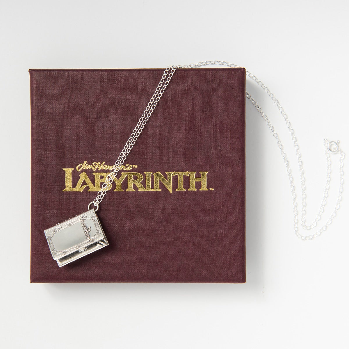 Step back into the magic and mystery of Jim Henson's Labyrinth with our Labyrinth Story Book Charm Necklace. Handcrafted from recycled sterling silver, this intricate necklace is a faithful replica of the storybook that Sarah holds at the beginning of the film—a book that foreshadows her journey into the Goblin King's realm. As if plucked from the Goblin King's hands, the charm bursts with detailed depictions of characters as they leap from the pages, bringing to life the whimsy and danger of the Labyrinth.