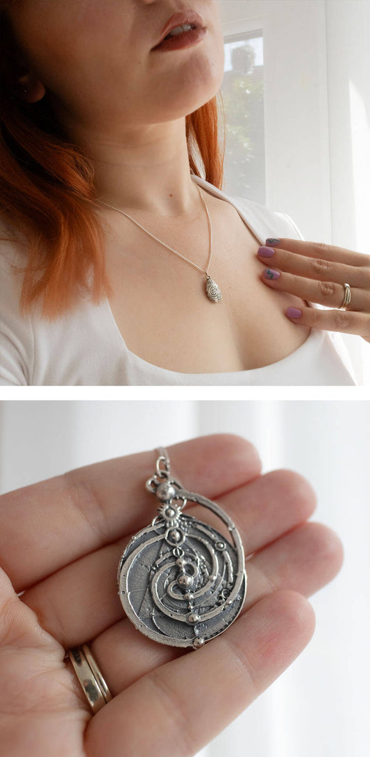 Large Mystic Spiral Constellation Mandala Necklace (Sterling Silver)